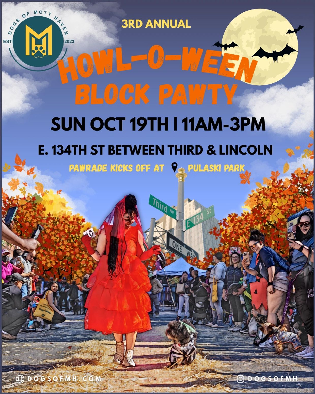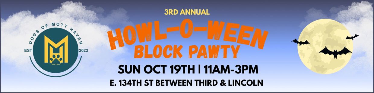 Now in its 3rd year, the Howl-O-Ween Block Pawty has become the Bronx’s most talked-about dog-friendly celebration. The day kicks off with a community Doggy Pawrade and continues with music, vendors, and the highlight of the afternoon — our Costume Contest judged by special guests.